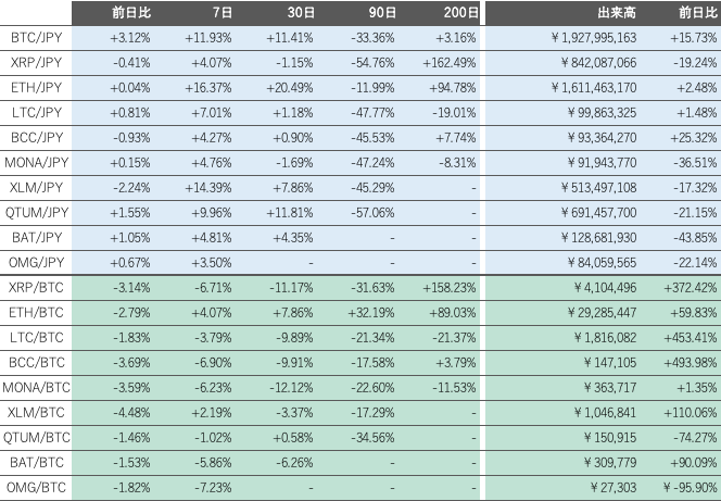 引き続き薄商いが続いているが、テクニカル的なセンチメントの改善やイーサの200日線回復によるアルトの物色もビットコイン相場の支援となればレンジ上限の43,000ドル(≒474万円)を試す余地もあると見ている。