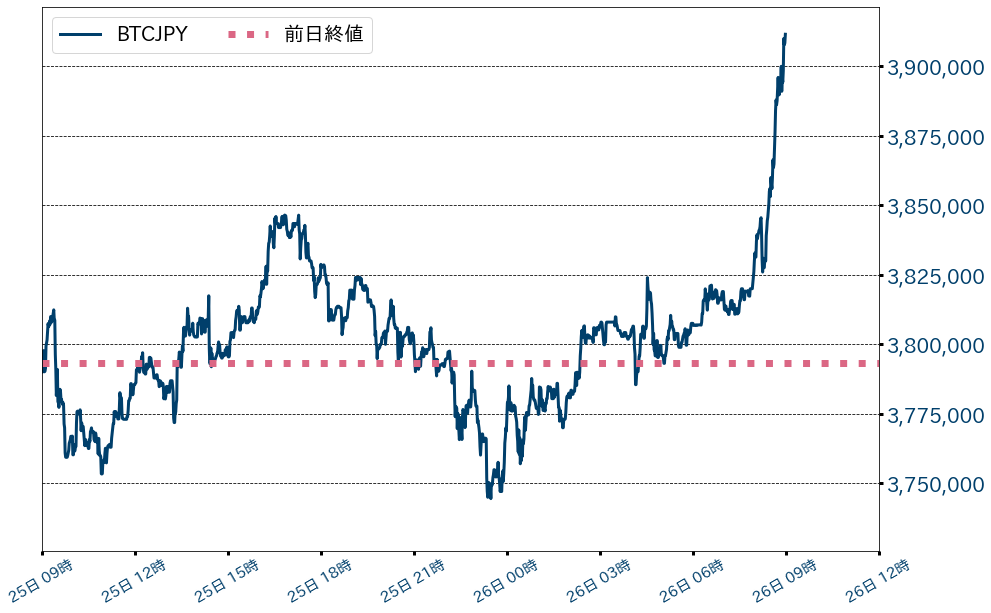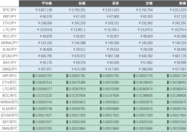 その後も、欧州中央銀行(ECB)の政策緩和維持の決定や、株高、さらにアマゾンがビットコイン決済受け入れを計画しているとの内部情報を追い風にビットコインは上値を伸ばし、相場は21日から25日まで5日連騰し、3週間ぶりに終値で390万円台に乗せた。