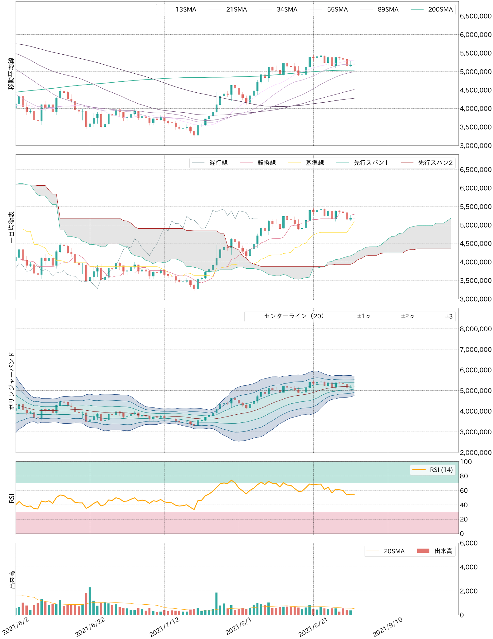 米財務省がインフラ法案の財源となる暗号資産(仮想通貨)取引の課税対象拡大を計画していることが判明し、前日のBTCは532万円から513万円付近まで急落を演じたが、東京時間のこの日の相場は戻りを試す展開。イーサリアムとカルダノ間のトークン移行ツール(ERC20コンバーター)のリリースが来週に迫るカルダノのADAの上昇や、イーサリアムのレイヤー2ソリューション、Arbitrum Oneの正式リリースがされETHが上昇し、BTCも連れ高になった格好だ。ETHは昨日の上昇で、レンジ下限周辺で推移するBTCを尻目に保ち合い上放れとなり、およそ3ヶ月半ぶりに38万円にタッチした。