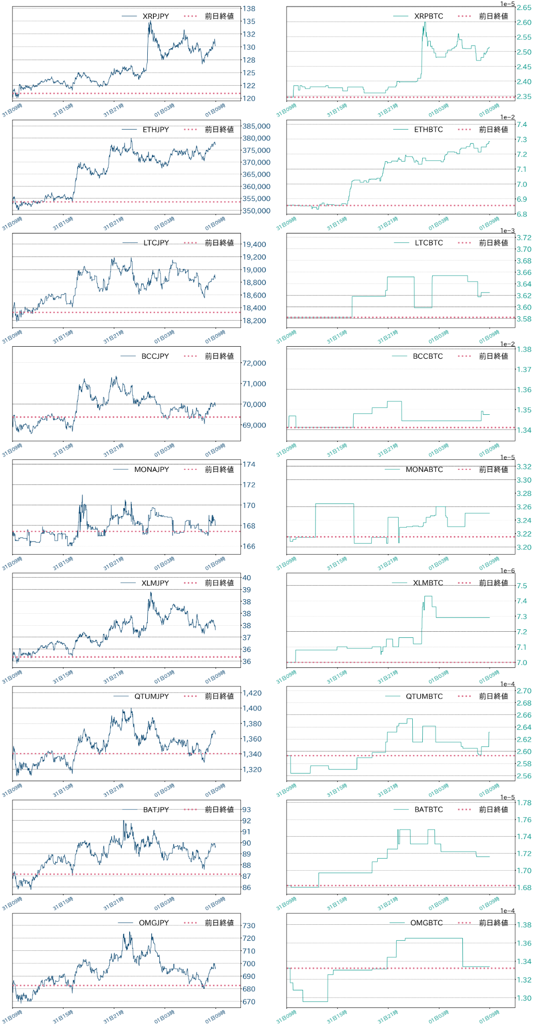 アルト堅調でETHは保ち合い上放れ BTCは伸び悩む