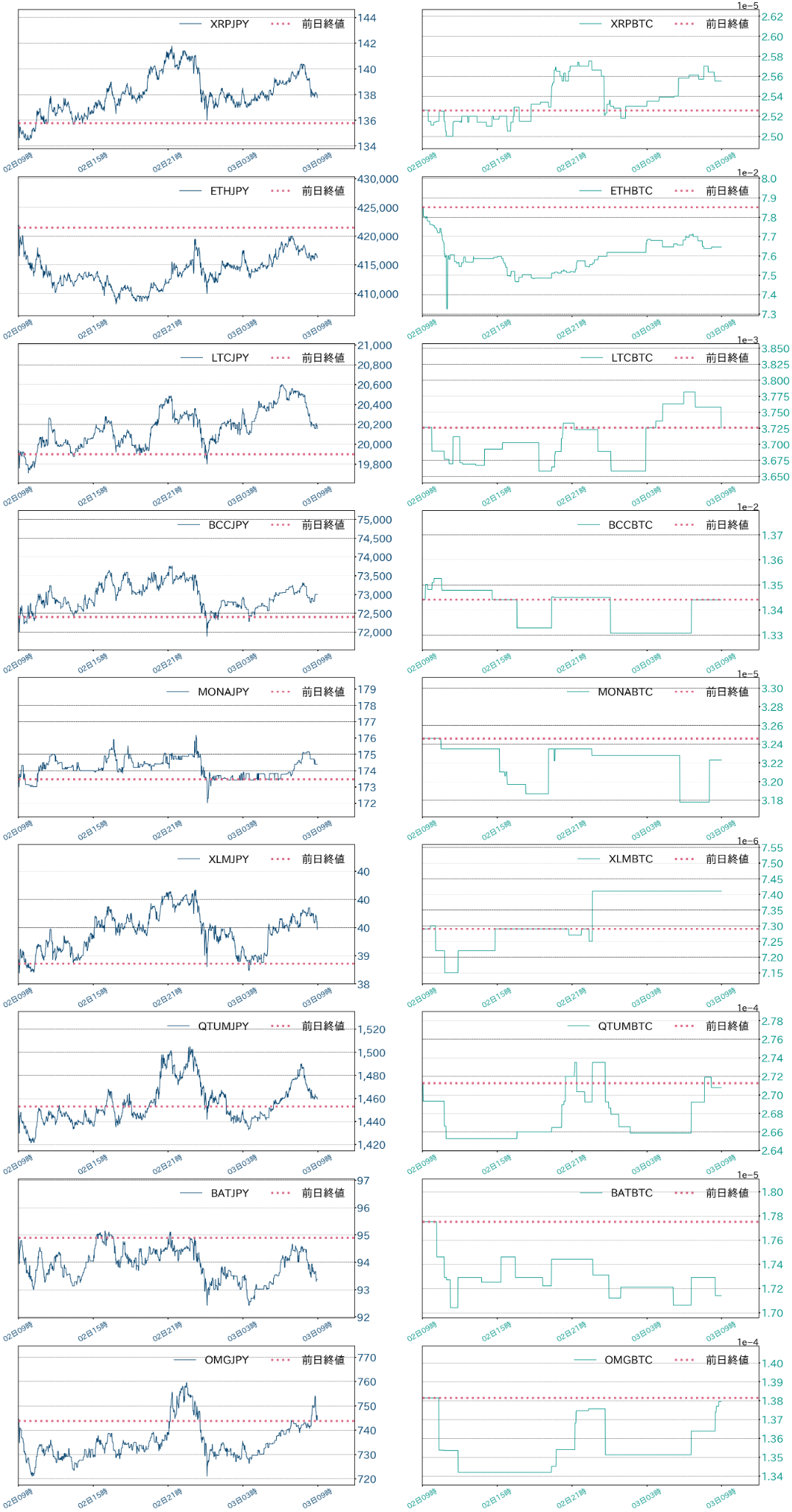 循環物色の流れが続く中イーサ(ETH)主導で530万円台に乗せたBTCは、昨日もADAの3ドル乗せに連れ高となり東京時間に540万円に乗せた。その後も、米株価指数先物やアルトコインの上昇が相場の支えとなり550万円にタッチし対ドルでは50,000ドルに乗せたが、欧州時間に入り3月25日安値の50,300ドル(≒553万円)周辺で上値を抑えられると高値での揉み合いに転じた。米時間序盤には再び50,300ドルを試すも失敗し反落。相場は540万円台を維持するも、本日の雇用統計を前に戻りは鈍くなっている。