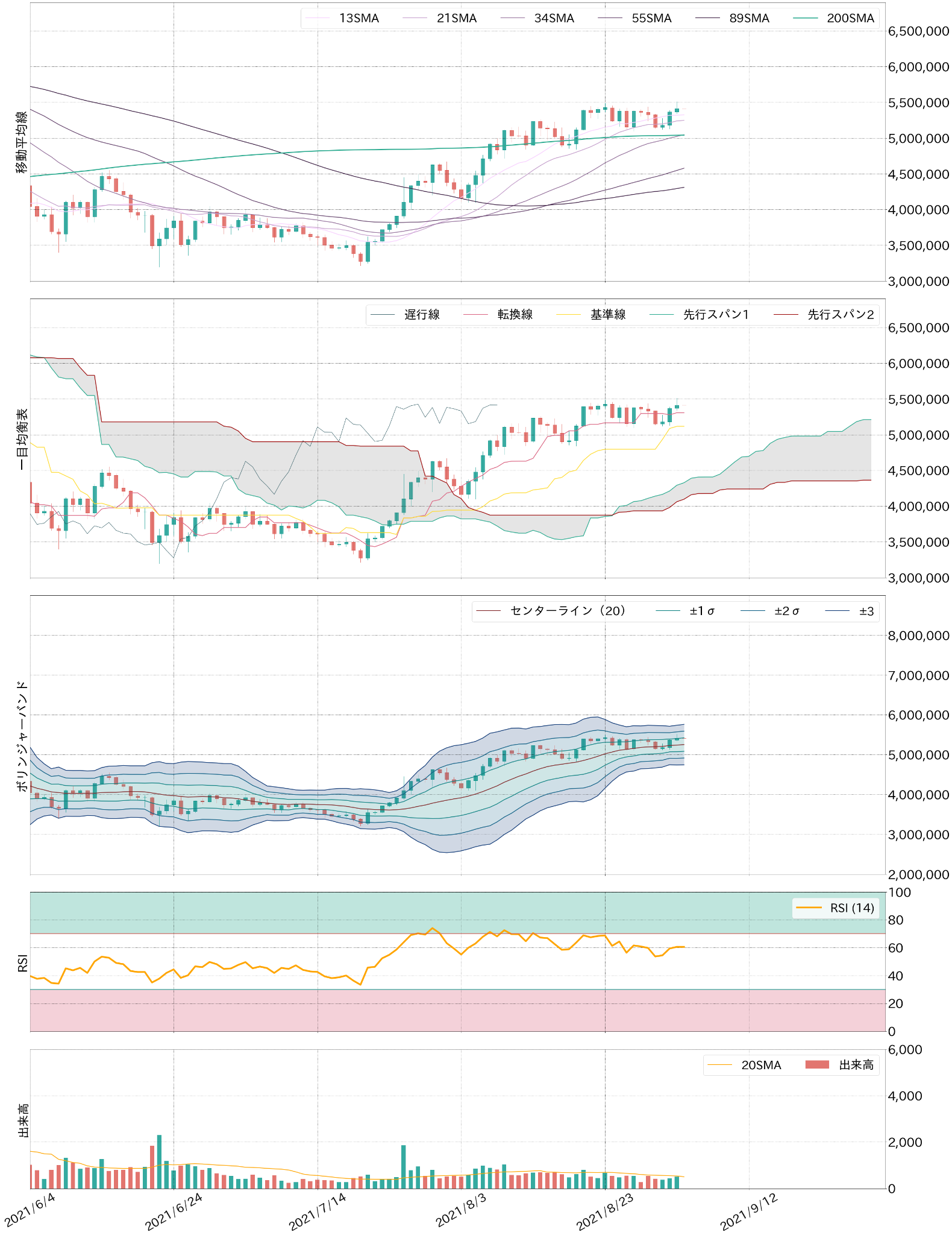 ただ、直近数ヶ月のADP雇用統計は、労働相が発表する雇用統計の先行指標とは機能していないことから、本日は予想外に強めの数字が出る可能性も拭いきれない。市場予想では、8月の非農業部門雇用者数は75万人の増加と、7月の94.3万人から減少が予想されており、労働市場の回復ペース鈍化が今夜も確認されれば、テーパリングアナウンスが早くても11月のFOMC会合になるとの思惑からBTCはレンジ上限上抜けを試すか。