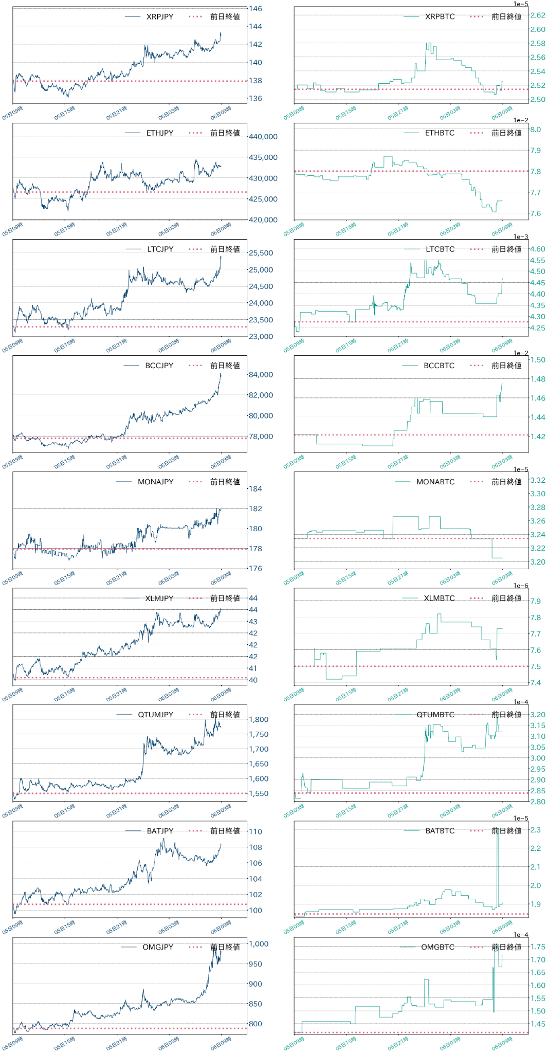 週末の相場は目星い材料に乏しく、50,000ドルを挟み込み概ね揉み合いに終始したが、今朝方に上昇に転じ、主要アルトコインも追随している。