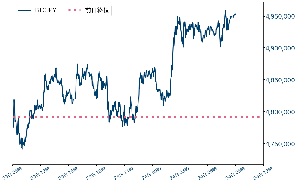 23日のビットコイン(BTC)対円相場は160,424円(3.35%)高の4,953,000円と二日続伸。週明けから悲観一色だったBTCは22日、米連邦準備理事会(FRB)による緩和的な金融政策の維持決定と中国恒大のデフォルトリスク後退により反転上昇。この日は底入れの条件として指摘した43,000ドル水準(≒474万円)を終値で回復した。