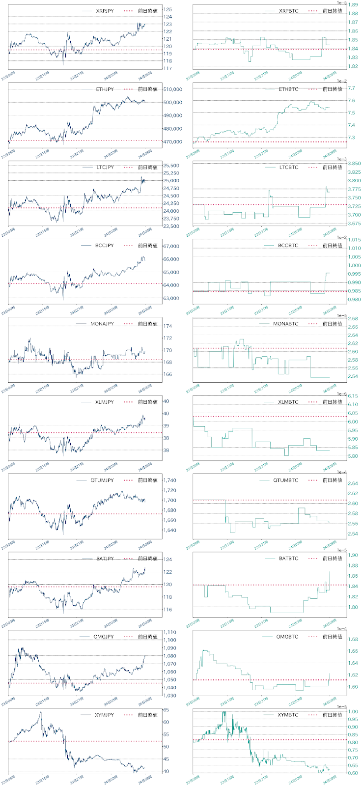 このところ特段の悪材料が連発しているわけでもないが、BTCはテクニカル的なセンチメントから鑑みても下降トレンドの継続は警戒されやすいか。今週はPCEの上昇で相場も切り返せるかと期待していたが、アク抜けにはもう少し時間がかかる公算が出てきたと見ている。相場が19日安値を割り込めば、週明け指摘の通り、対ドルで節目の54,000ドル(≒621万円)、89日線(612万円)や一目均衡表の雲下限(600万円)が密集するエリアが下値目途としてある。