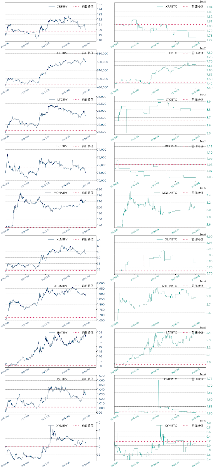 アルトコインも循環物色の様相で概ね底堅い推移が続いている他、BTCはボリンジャーバンドの-1σを回復し、強い下降トレンドシグナルとなる下降バンドウォークが解消されている。