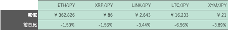 他方、BTCの相場は売り崩されている訳でもなく、FOMCまで警戒感でジリ安となろうとも下値は限定的か。対ドルで節目の40,000ドル(≒458.7万円)はサポートとして意識される。上値目途としては、週明け指摘の通り、48,000ドルと対ドル200日線が密集する550.5万円〜558万円エリアと見ている。