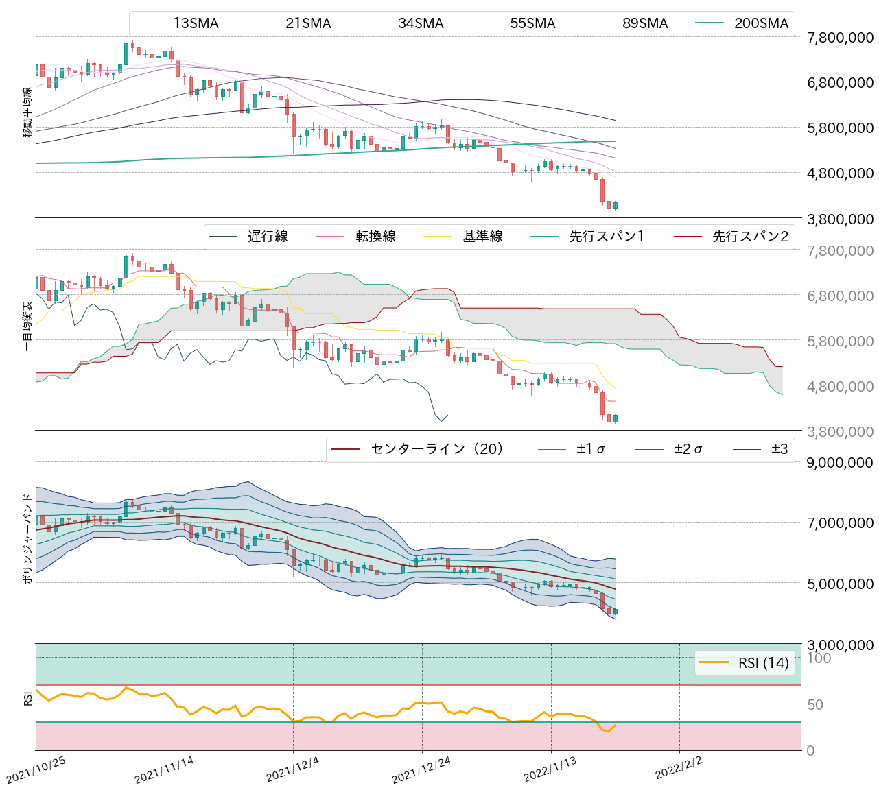 bitbank Report 2022/01/24:BTCはFOMC前に大幅安 月足終値の気になるポイントは?