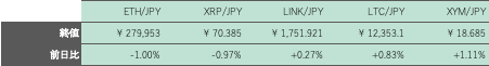 後場からの相場は、米株先の反発を受けて下げ止まりジリ高に転じたが、1時間足の200本移動平均線(430万円)が相場のレジスタンスとなると、米株が安寄りしたことでBTCも反落。ただ、米市場引け後からは、東京時間の安値となる410万円近辺で押し目買いが入り、相場は430万円から下に往って来いを演じた。