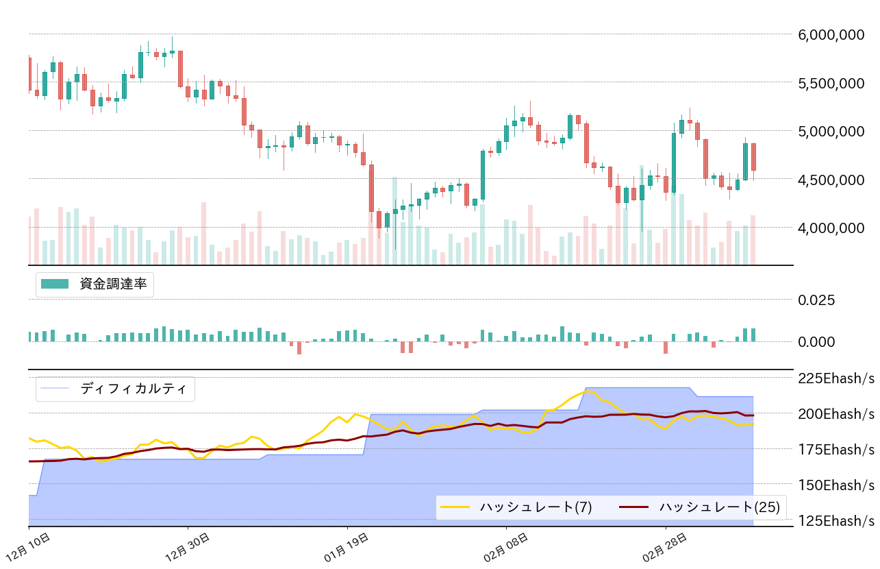 10日のビットコイン(BTC)対円相場は276,648円(5.69%)安の4,587,362円と反落し、9日の上げ幅をほぼ帳消しにした。
