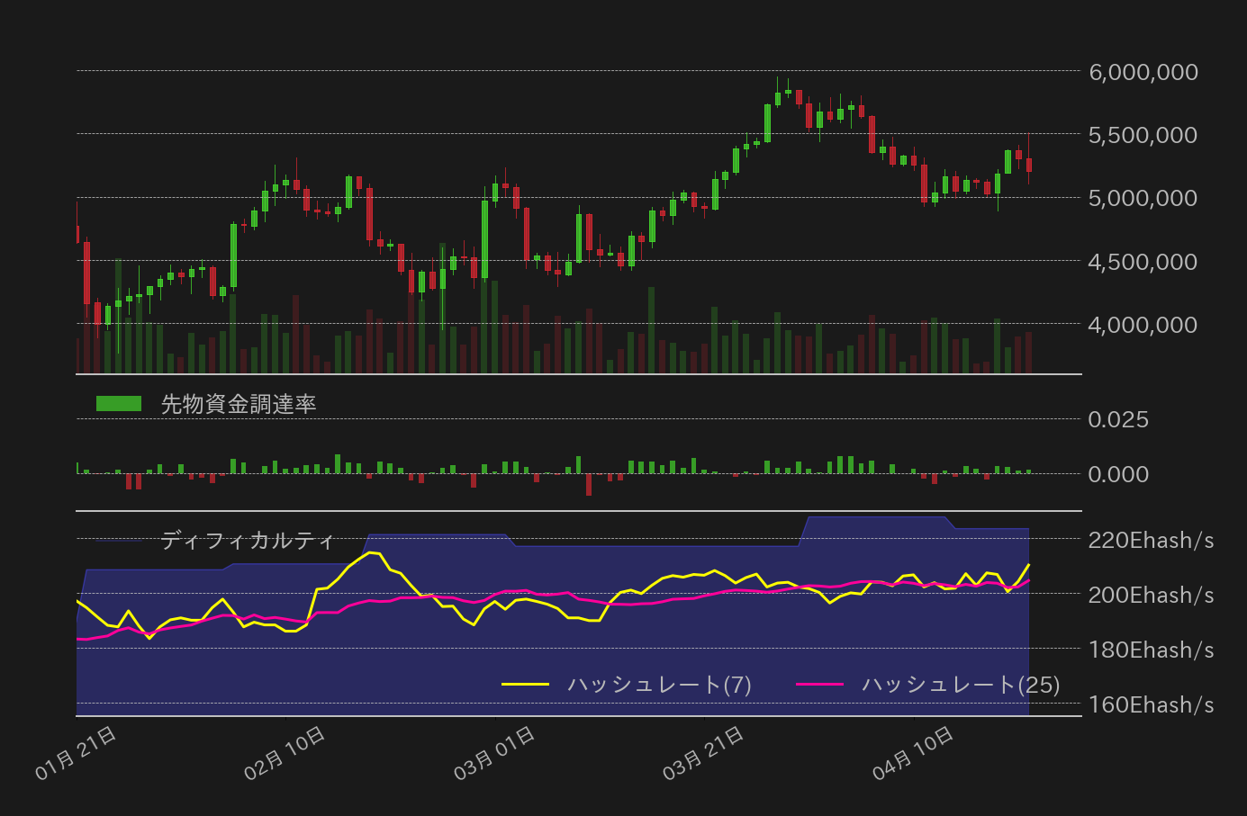 一方、パウエル米連邦準備制度理事会(FRB)議長がこの日行われた国際通貨基金(IMF)のイベントで、政策金利に関して「中立な水準まで迅速に引き上げる」と発言したことを受け、米株が急落。ナスダック指数は直近安値を割り込むほど強く押し、BTC相場は連れ安の様相で米時間は下げ一色に終始。今朝方には510万円にタッチしている。