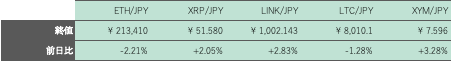 BTCの対ドルは、昨日の上昇で200週移動平均線を回復しており、今週の週足が同水準を維持して終値を付ければ相場トレンドが上向く切っ掛けともなろう。