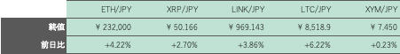 テクニカルの側面では、BTC対ドルは200週移動平均線を回復し、節目24,000ドル(≒322万円)がレジスタンスとなっており、週足終値が200週線を維持できるかも注目したい。