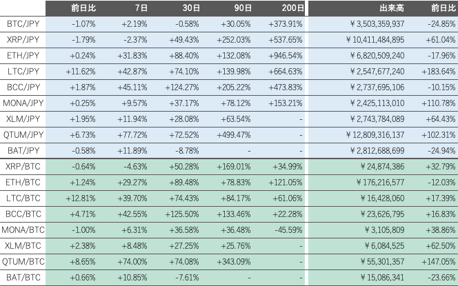 ただ、その後スペースXがドージコインで支払われたジオメトリック・エナジー・コーポレーション(GEC)の商業月輸送ミッション「DOGE-1 Mission to the Moon」を発表すると、ドージコインは反発。この日はライトコイン(LTC)やビットコインキャッシュ(BCC/BCH)も強含み、ビットコインも630万円台中盤に戻した。
