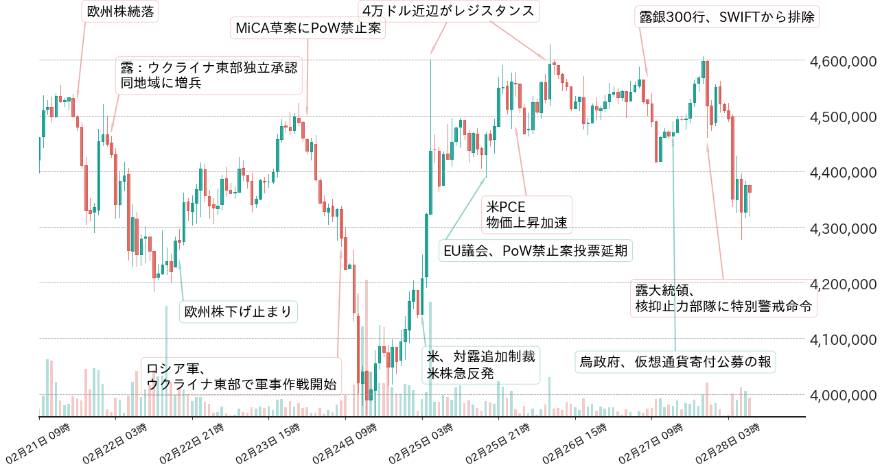 bitbank Weekly Market Insight 2022/02/28:停戦協議決定もBTC反落 4万ドルに厚い壁