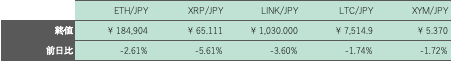 週末も概ね280万円周辺での推移が続いたが、分散型取引所アグリゲーターのTransit Swapがハッキングの被害に見舞われたと報じられると、若干、上値を重くした。また、シカゴマーケンタイル取引所(CME)のBTC先物の取引が再開されると不安定な値動きとなり、足元、相場は270万円台中盤まで押している。