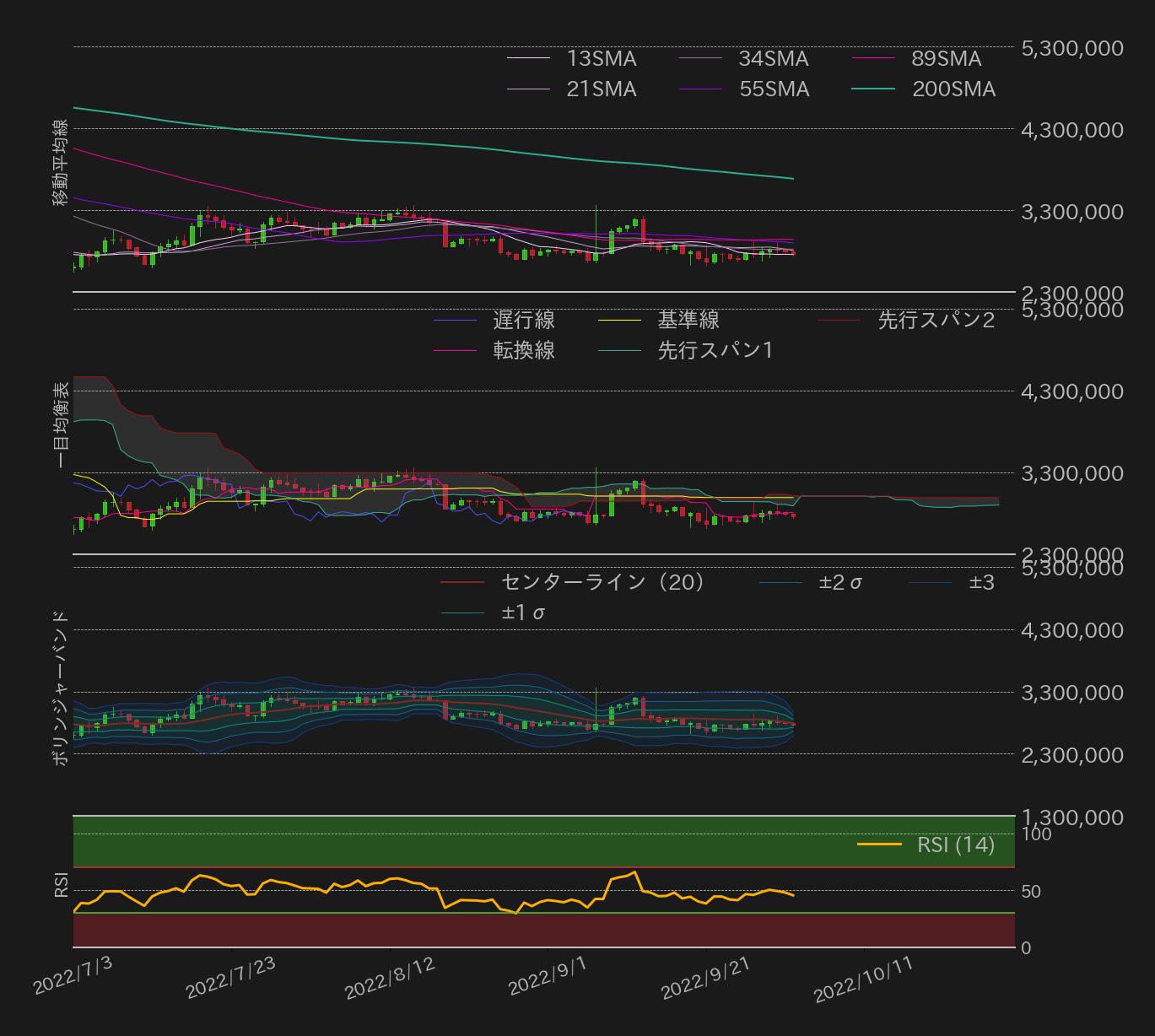 9月26日〜10月2日のビットコイン(BTC)対円相場の週足終値は、前週比61,765円(2.29%)高の2,762,417円と小幅に反発し、ドル建てでは週足終値で19,000ドル(≒275万円)を回復した。