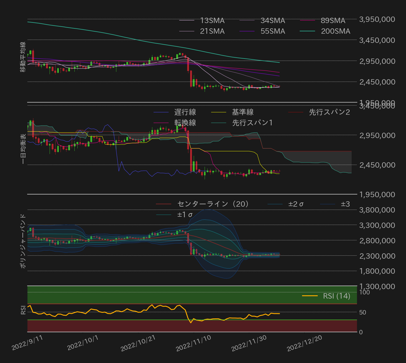 つまり、今回のFOMCでは利上げ幅も焦点となってくるが、来年末の政策金利着地見通しも重要となり、見通しが市場予想を上回れば、BTC相場には売り圧力が掛かると指摘される。インフレ指標は低下してきているものの、GDP成長率や雇用統計の改善など、足元では経済指標の結果がまちまちとなっており、FOMCの結果が出るまで余計なリスクテークは控えるのが無難だろう。