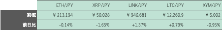 5日には、一時戻りを試す場面もあったが、22,000ドル台後半で上値を抑えられ反落。足元では22,000ドル中盤(≒300万円台中盤)で推移している。