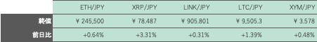 第2表:アルトコイン概況 出所:bitbank.ccより作成