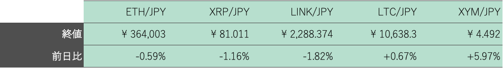 週末のBTC円は610万円台後半で揉み合いに終始したが、本日は売り優勢で取引が始まり、足元では612万円周辺で推移している。