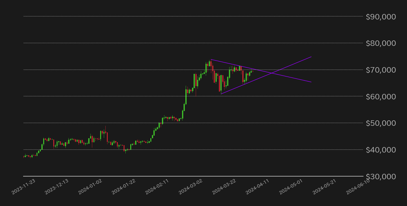 bitbank Report 2024/04/08:BTCは半減期に向けた最後の上昇となるか 三角保ち合いも終盤
