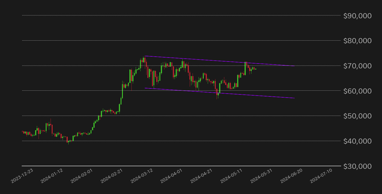bitbank Report 2024/05/27:BTC週足は続伸でブレイクアウト直近 週後半の材料まで水準を維持できるか?
