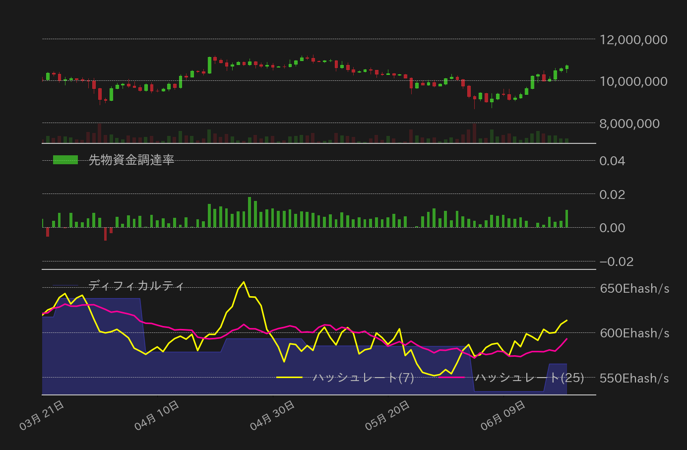 15日〜21日のビットコイン(BTC)対円相場の週足終値は、前週比1,086,928円(11.29%)高の10,717,676円と大幅続伸し、6月の下げ幅を解消した。