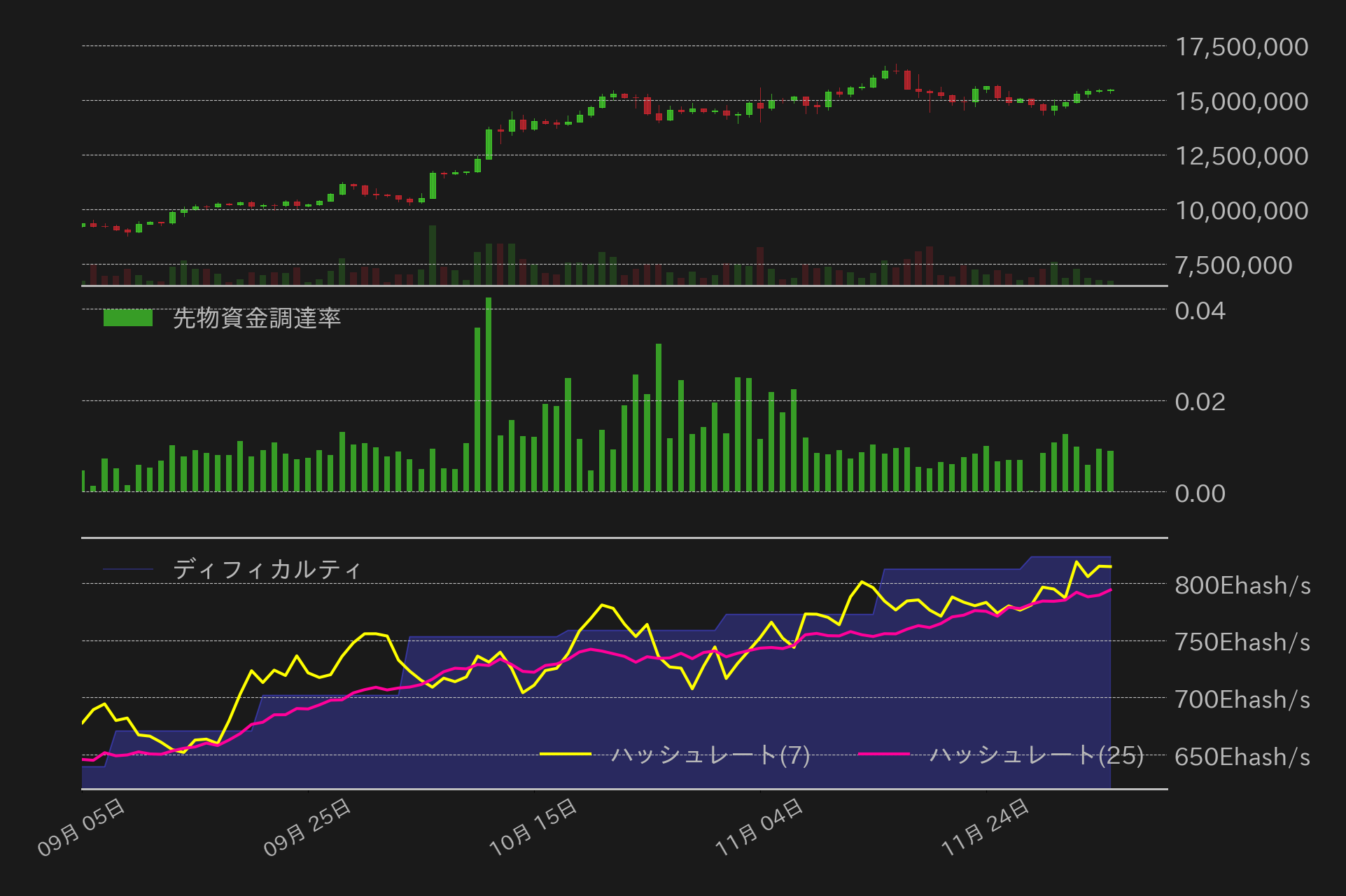 2日にブラックロックの現物ビットコインETF(IBIT)から過去最大の3.32億ドルの資金流出が確認されたことで、3日の東京時間に相場は失速したが、この日の米国時間には米ハイテク株主導で株式市場が反発し、BTCも連れ高で1550万円にタッチした。