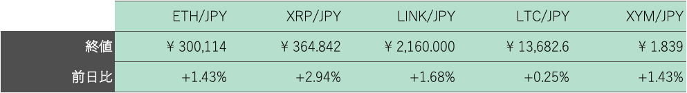 一方、米露首脳電話会談で、ロシアがウクライナのエネルギー施設への攻撃を30日間停止することで合意すると、19日東京時間からはジリ高に推移し1250万円を回復した。更に、FOMCでは年内の利下げ回数見通しが維持された他、国債償還による量的引き締め(QT)ペースが従来の5分の1に調整されたことで、相場は一時1300万円にタッチした。