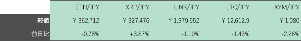 一方、これによりドル建てBTC相場が心理的節目の10万円周辺まで水準を下げると、その後は買い戻しが入り、6日の欧州時間には半値戻しを回復し、確りと推移。また、この日発表された5月の米雇用統計が上振れとなると、景気後退懸念が和らぎリスクオンムードが相場を1530万円周辺まで押し上げた。