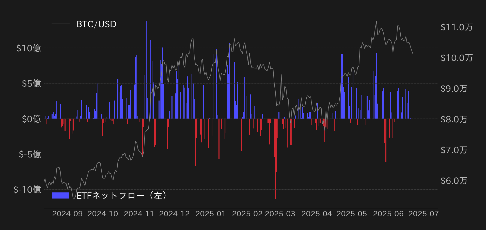 よって、目先のBTC相場は①オンチェーン的な値頃感による押し目買い、②中東情勢を巡る市場の楽観姿勢によって、BTC先物の窓埋めが完了する10万3000ドル(≒1511万円)を試す展開が見込まれる。
