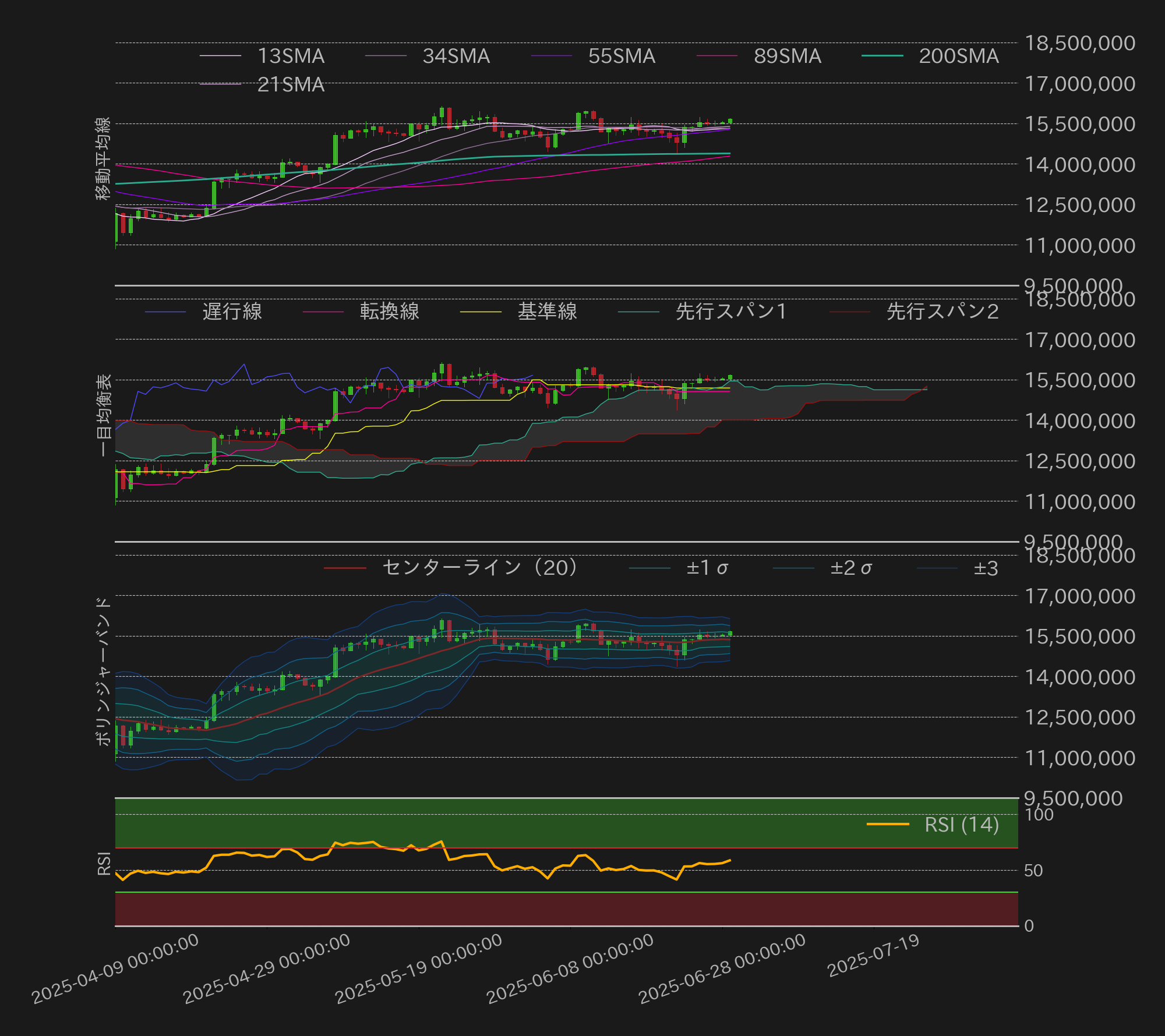 週末もBTC円は1550万円での揉み合いが続いたが、600ドル以下の暗号資産(仮想通貨)少額決済の免税が盛り込まれたバイデン政権時代の「ビルド・バック・ベター法案」の修正案採決が本日にも迫る他、米上院がトランプ減税法案の採決を進めることで合意したことで、29日の米国時間から上値を窺う展開となっている。