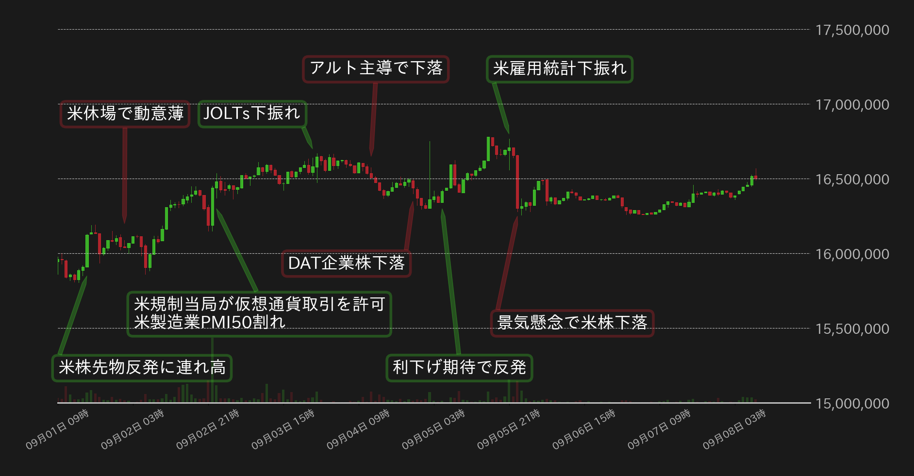 bitbank Report 2025/09/08:利下げ期待と景気懸念で揉み合うBTC 雇用ベンチマーク改定に注目