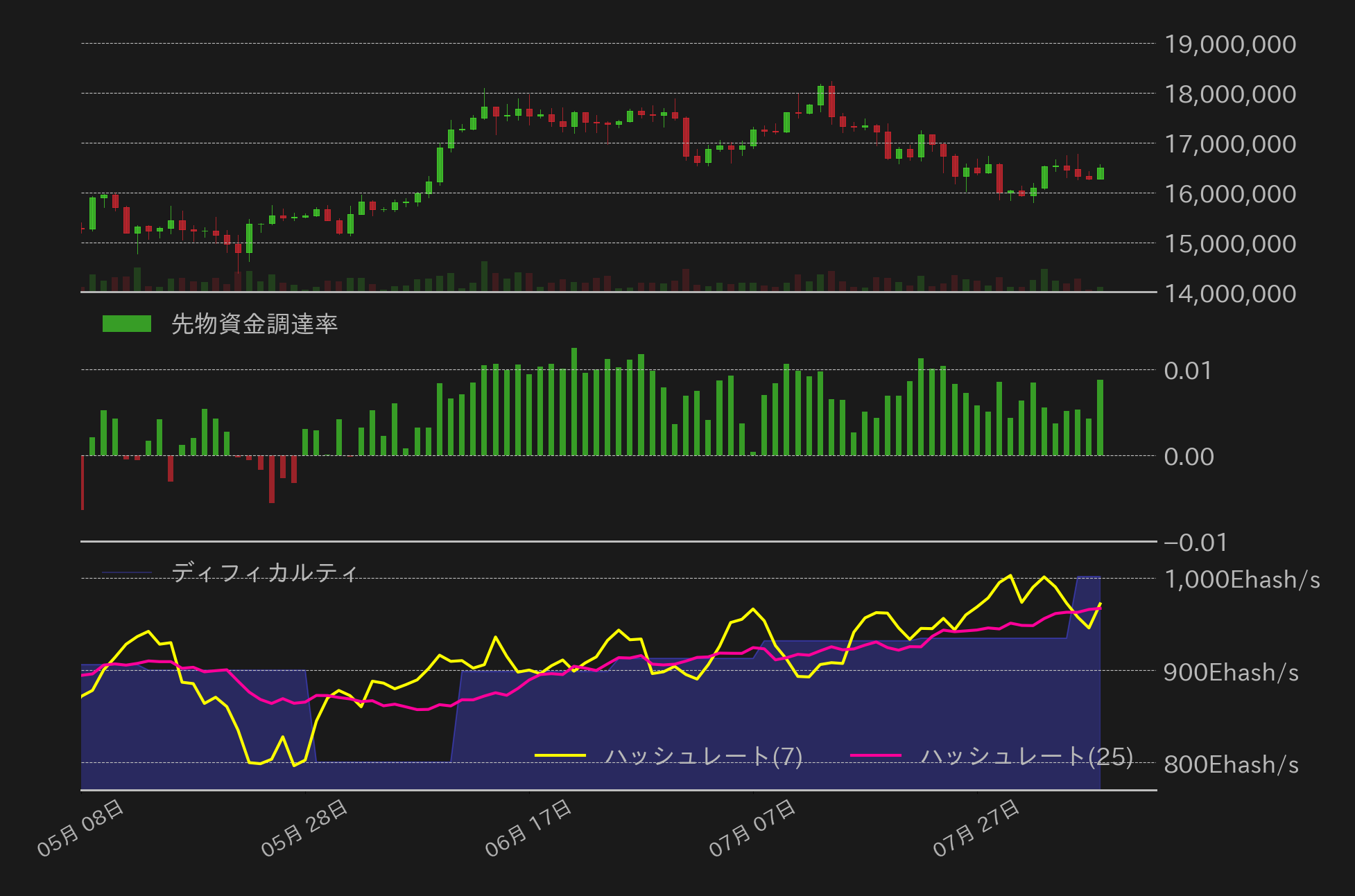 週末も前半は上値の重い展開となり、相場は1620万円台で推移する場面もあったが、7日からは徐々に戻りを試し、1650万円を僅かに上回った。