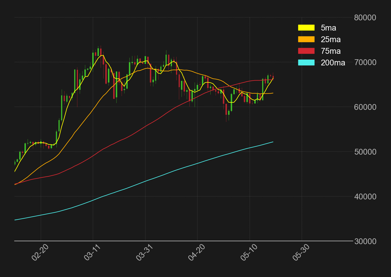 週刊テクニカル分析:ビットコイン(BTC)ドル 2024/05/20