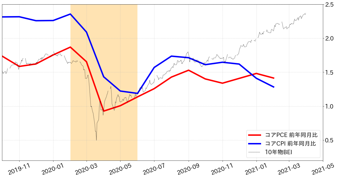 3月分のCPIは4月13日、PCEは4月30日の発表となっています。