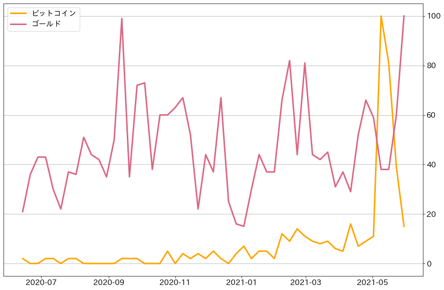 第5図:「Gold Environment」、「Bitcoin Environment」のグーグルトレンド検索結果 出所:trends.google.comより作成
