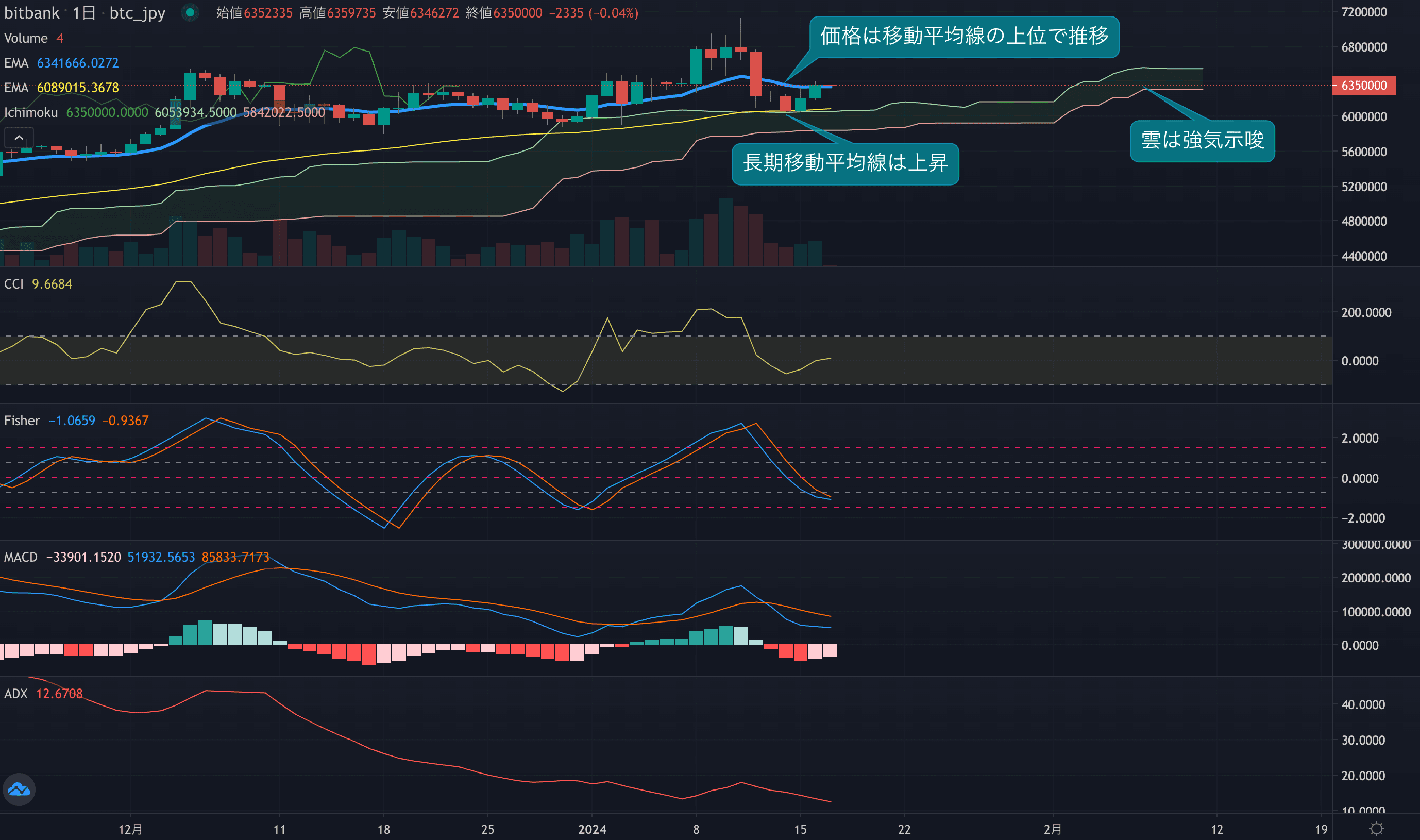 - 昨日のビットコインは2.3%上昇し、終値は635.2万円でした。日足は僅かに平均線を上回り、強いプライスアクションとなりました。今週は2日連続で上昇し、底堅い動きとなっています。