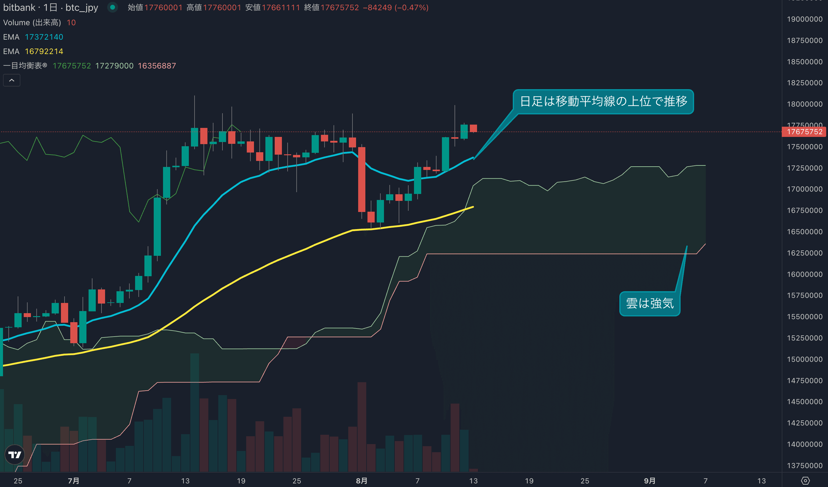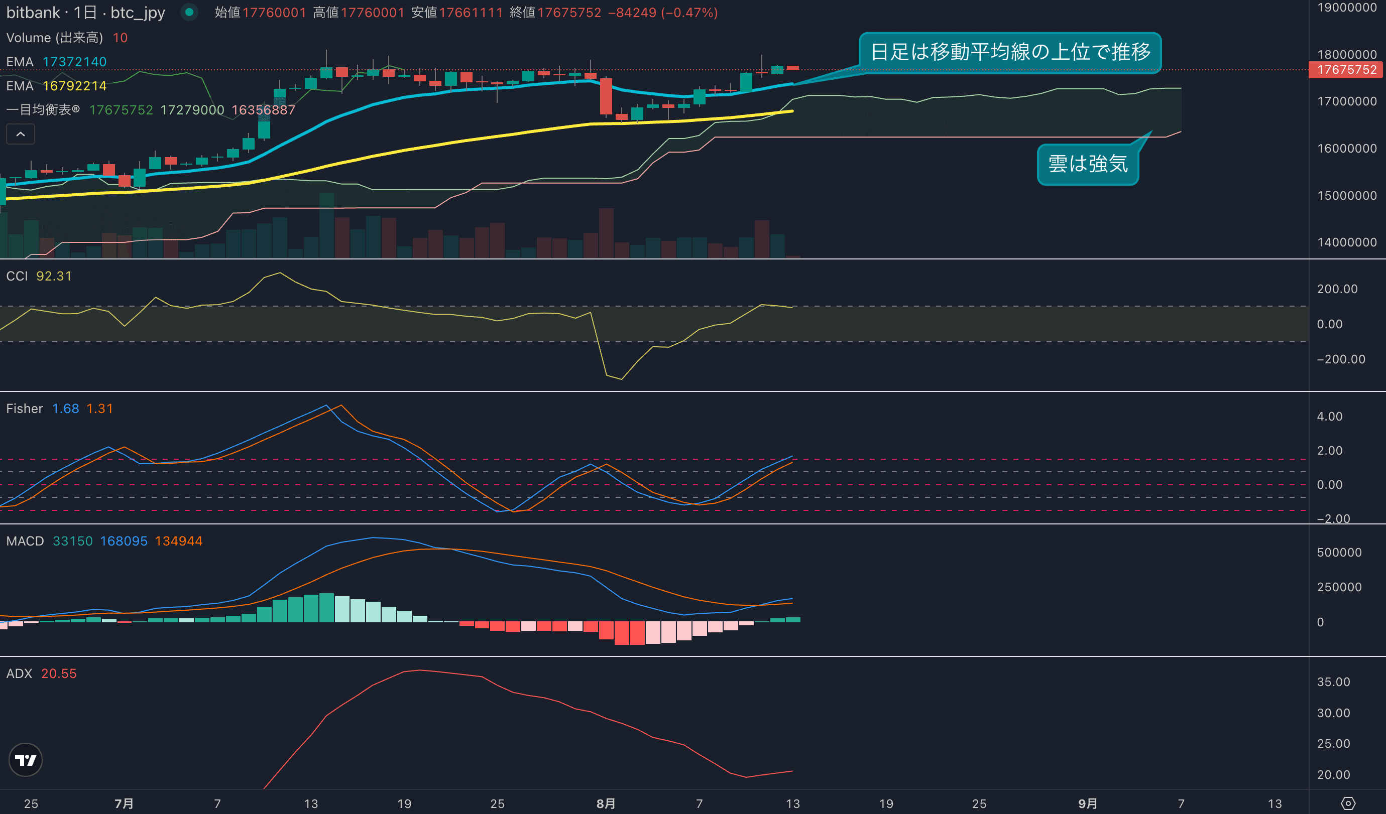 テクニカルは強気トレンドの再開を示唆も1800万円にはレジスタンス