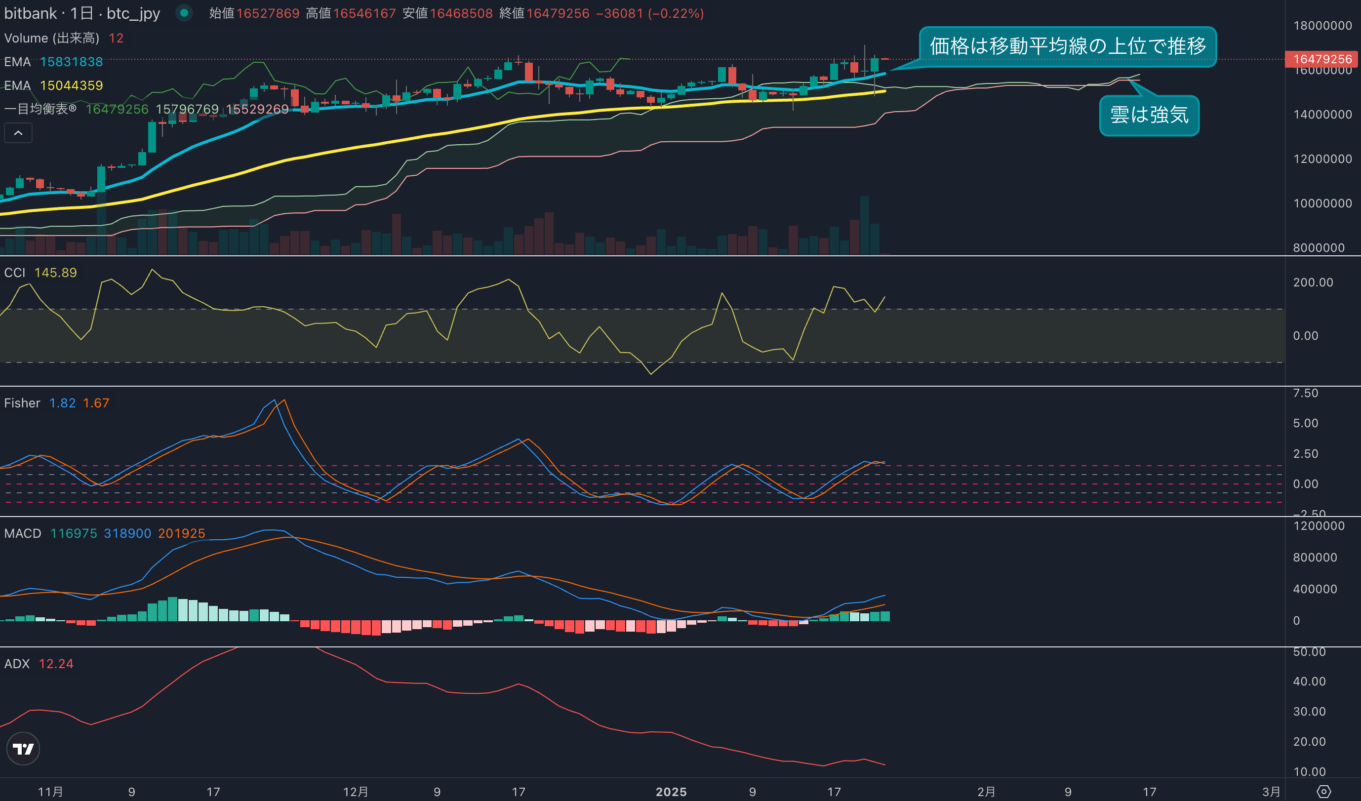 日足は終値ベースで高値を更新、価格は再度1600万円台に