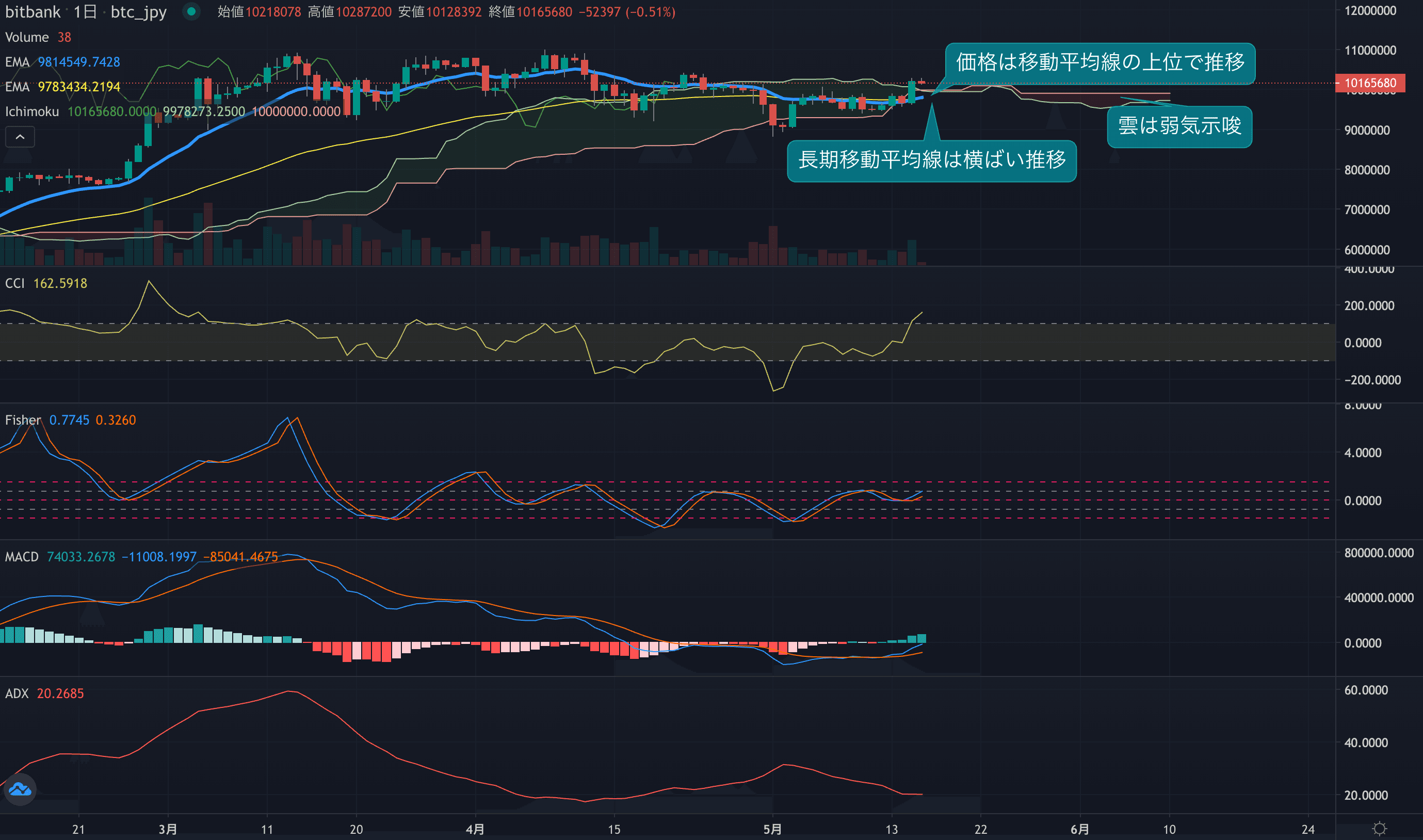 価格は1000万円台回復、CCIは1ヶ月ぶりに100越え