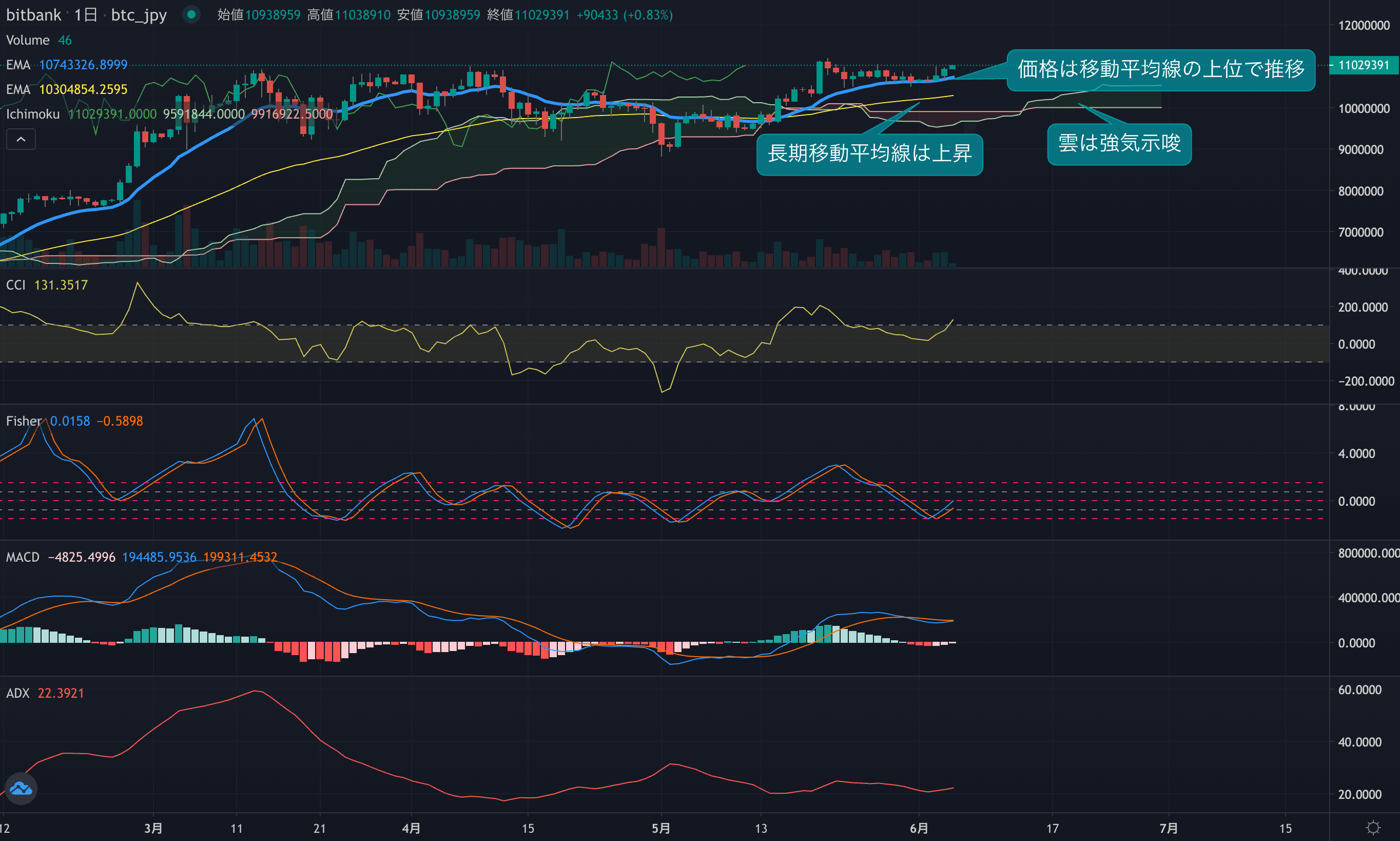 今週は買いの強さが見られる、足元で価格は1100万円を回復