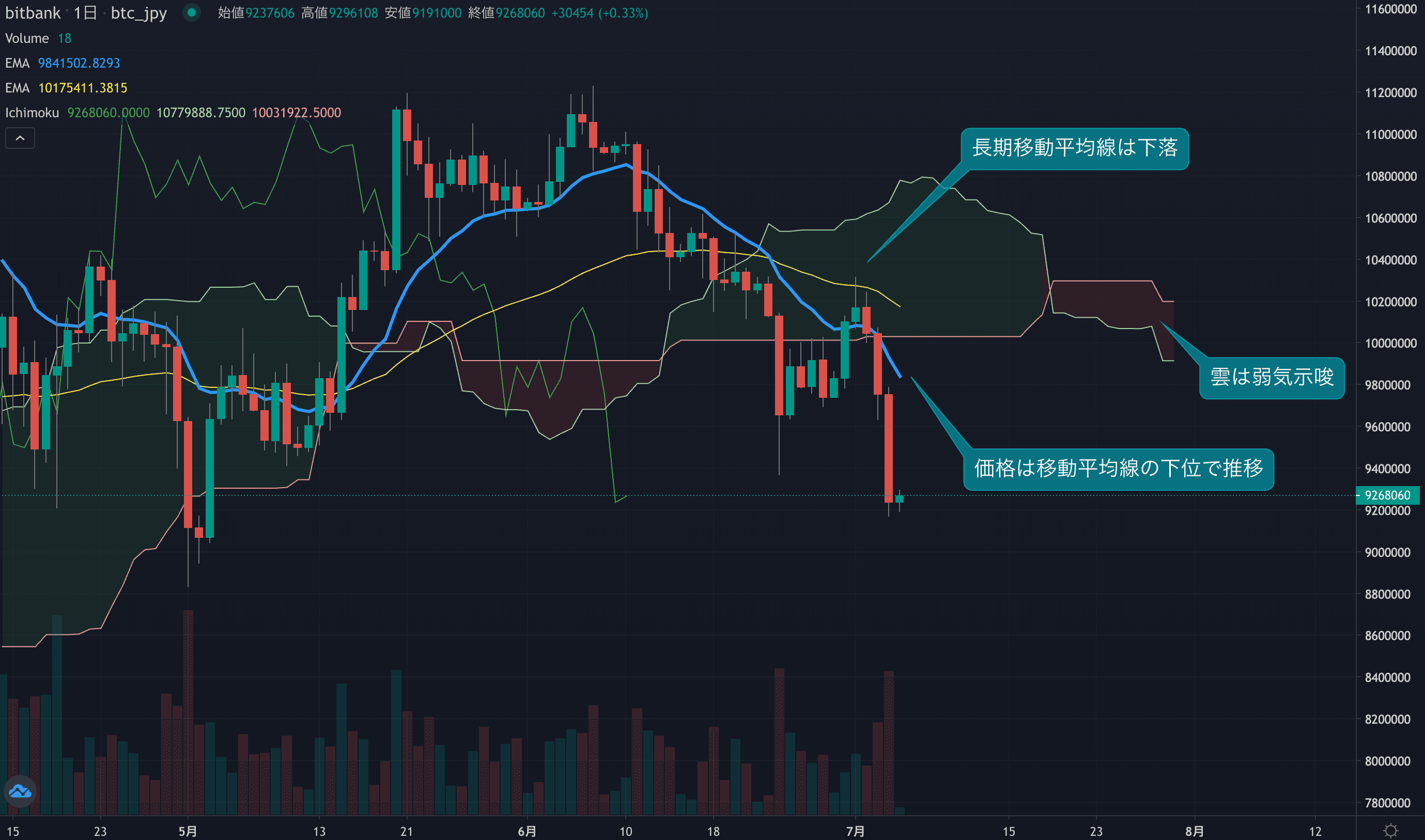 相場は先週の安値を割り込み下落トレンド継続、価格は900万円を割り込む動き
