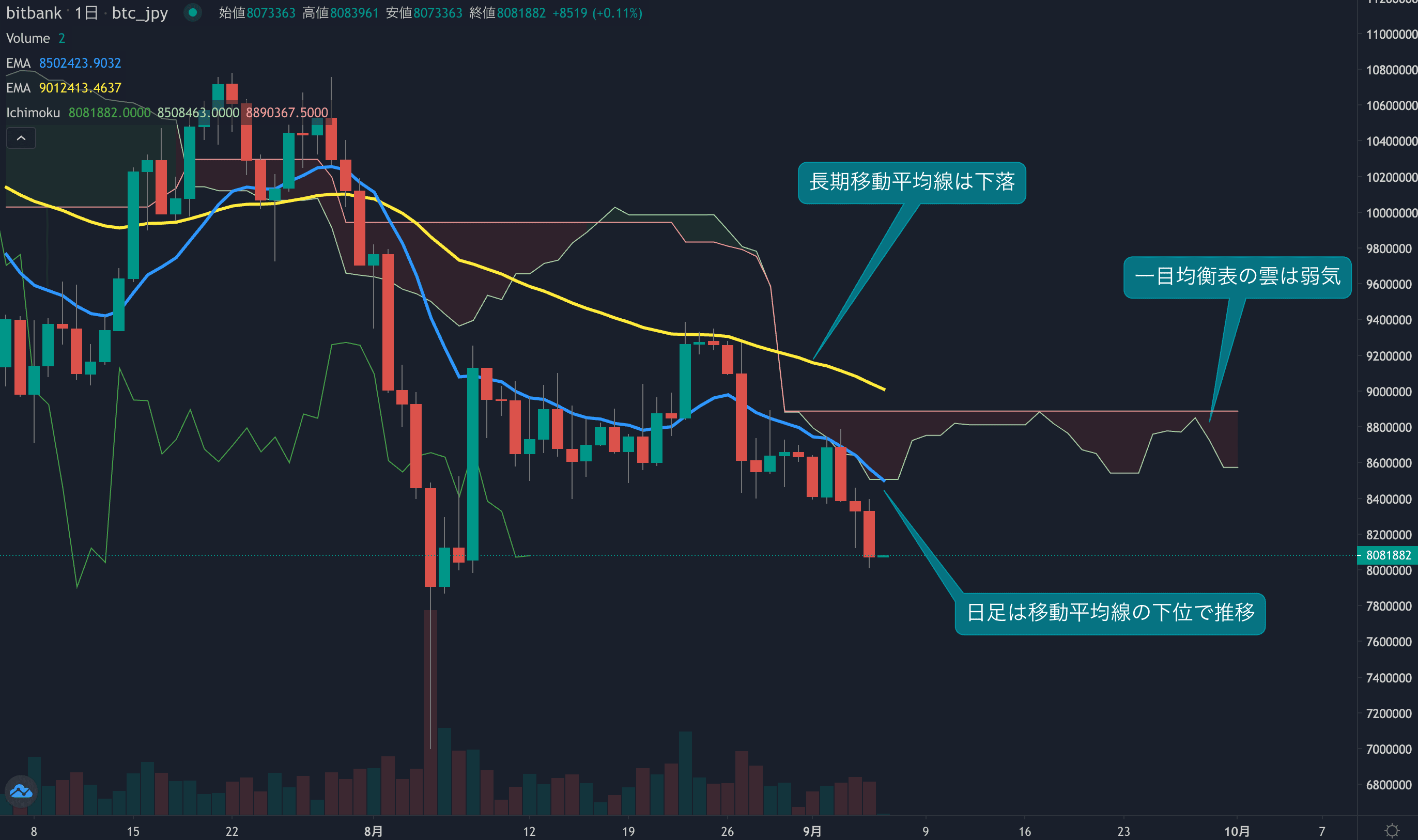 価格は800万円に肉薄、8月にサポートされた価格水準まで下落