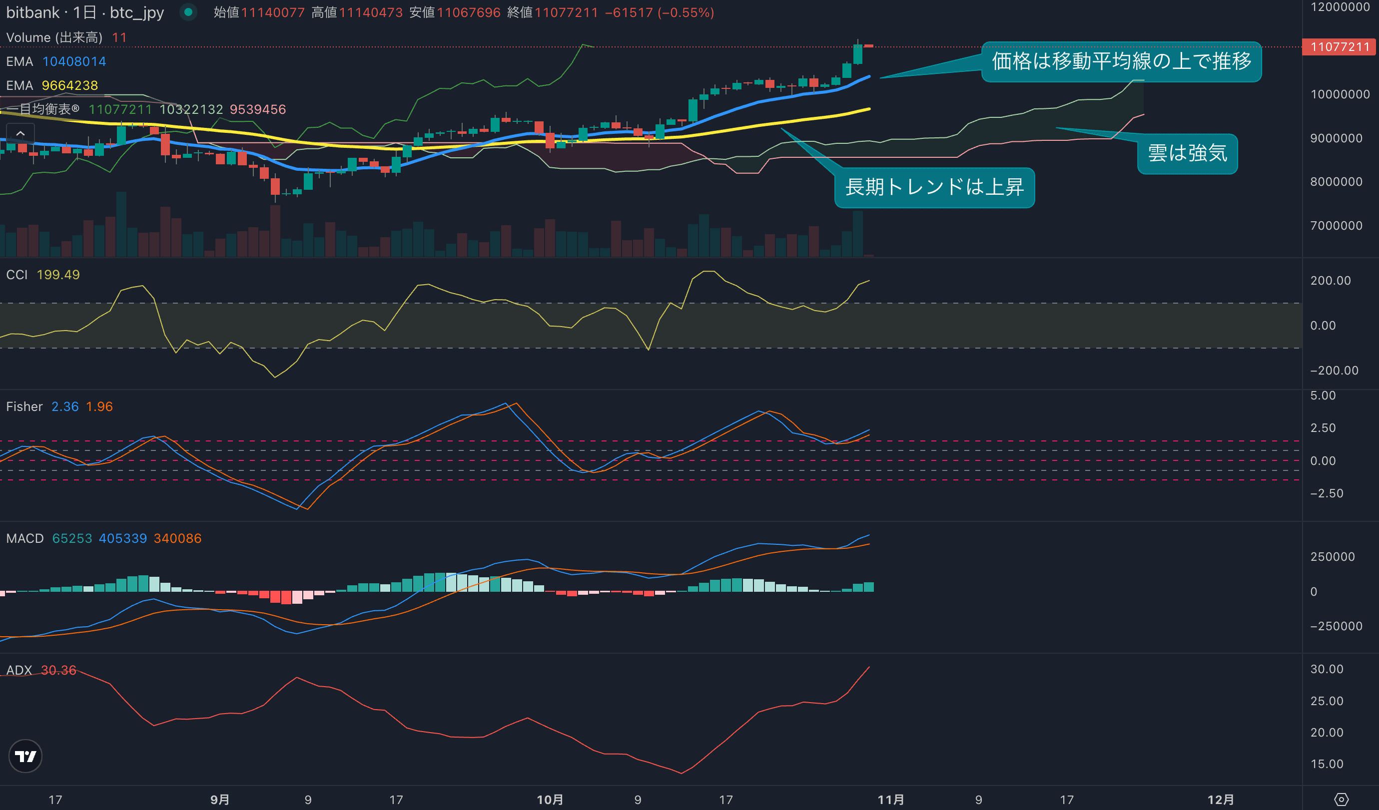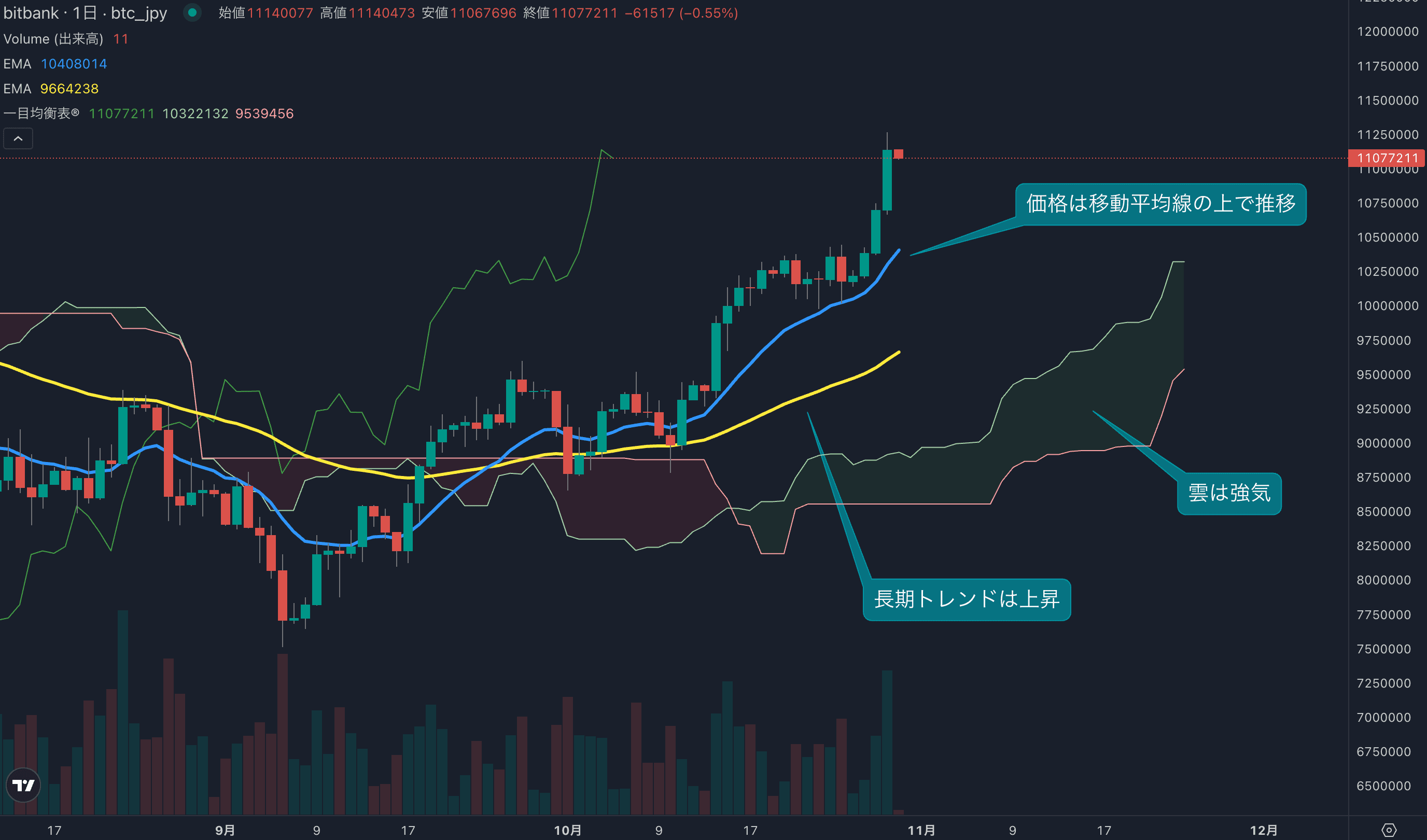価格は1126万円まで上昇、相場には強い上昇トレンドが発生