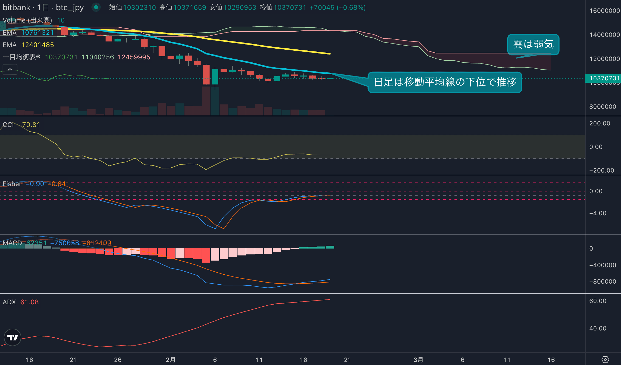 BTC/JPYテクニカル分析|ADX上昇で下落トレンド強まる、売られ過ぎ反発はあるか