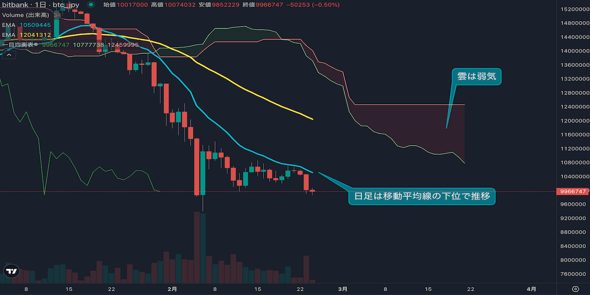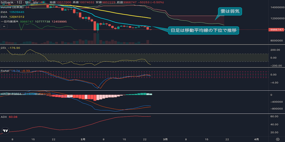 週足5週続落、日足も弱気継続─1000万円攻防(2/17)