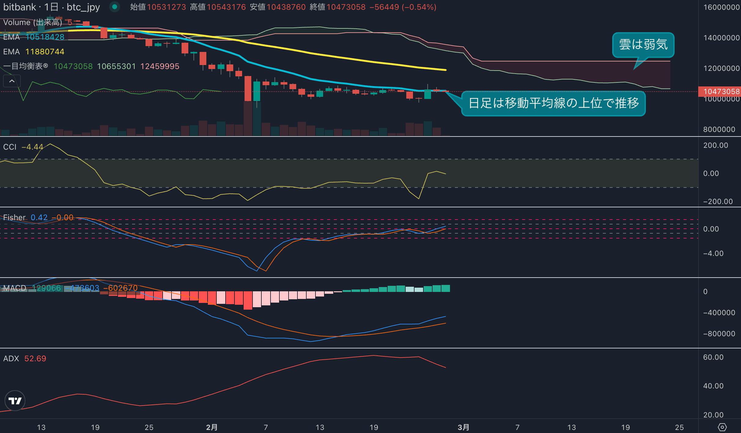ビットコイン1052万円|短期強気回復も長期は弱気継続【2月25日テクニカル分析】