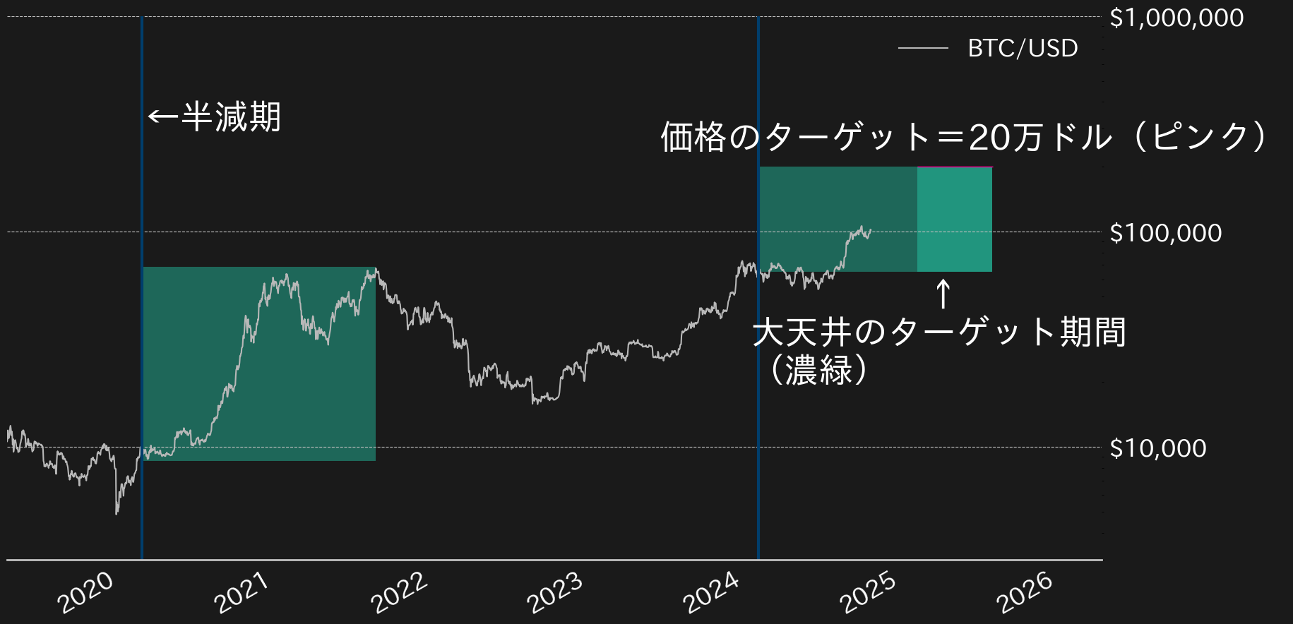 よって、BTCの相場上昇は2025年の上半期にかけて継続すると想定している。